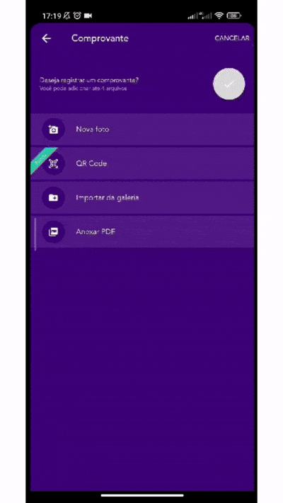 É bem simples de registrar uma despesa fazendo a leitura do QR Code, a seguir te conto como utilizar esta opção: