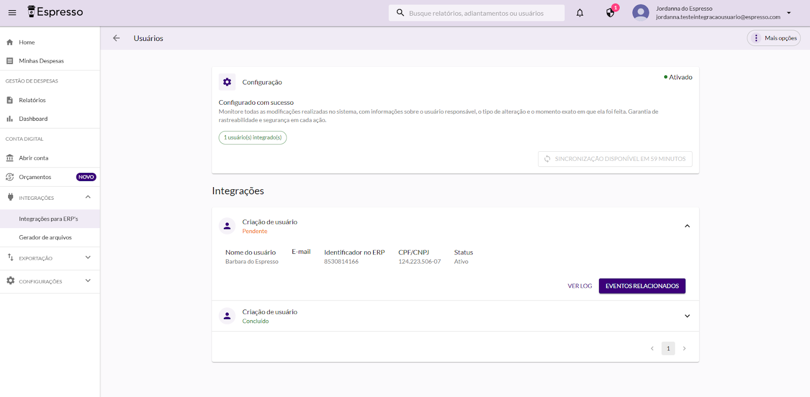 - Sincronize a integração no Espresso e acompanhe a importação dos usuários.